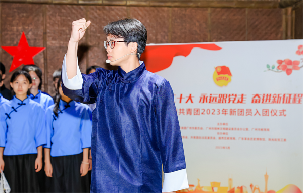 广州青年报讯(见习记者 王晨辉 陈天旭 实习记者 吴莹莹 通讯员 穗团宣)5月6日,由团市委、市文明办、市教育局主办的“学习二十大、永远跟党走、奋进新征程”广州共青团2023年新团员入团仪式在团一大纪念馆举行,30名新团员代表庄严宣誓,加入中国共产主义青年团。