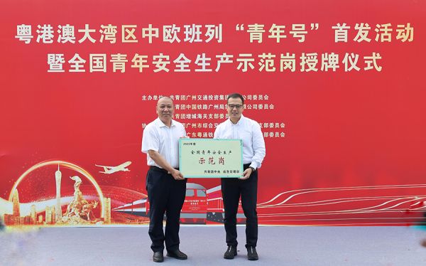5月16日上午,由广州交通投资集团团委、广铁集团团委和增城海关团支部联合主办的粤港澳大湾区中欧班列“青年号”在广州交投广州东部公铁联运枢纽增城西站顺利首发。