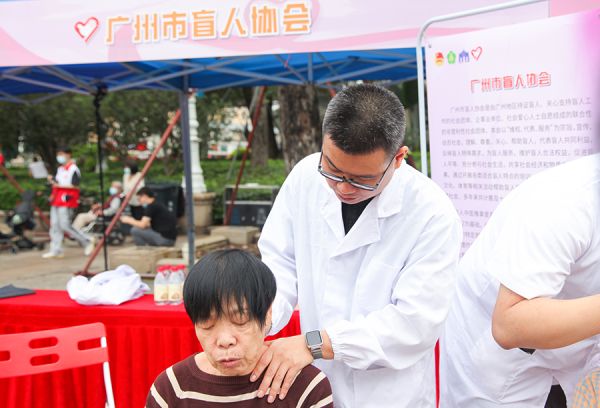 广州市盲人协会视障志愿者为市民做推拿