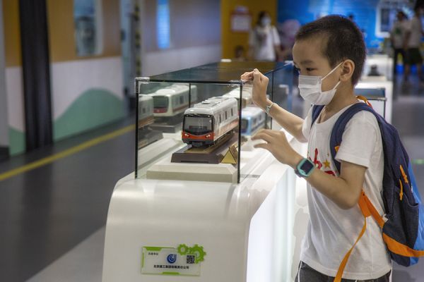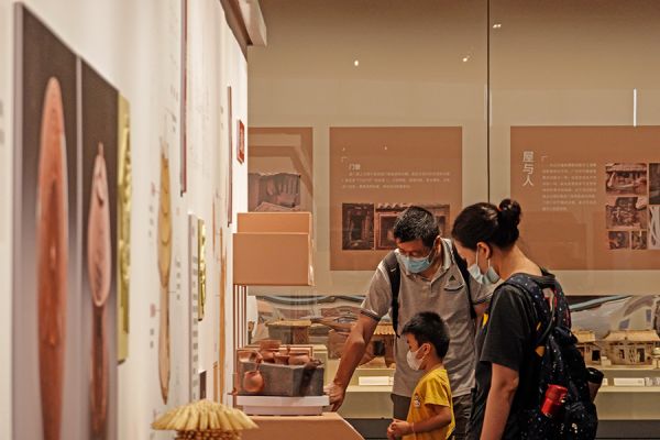 博物馆已成为青少年儿童课外学习的好地方。一对父母正陪同儿子在博物馆参观 何燕/摄