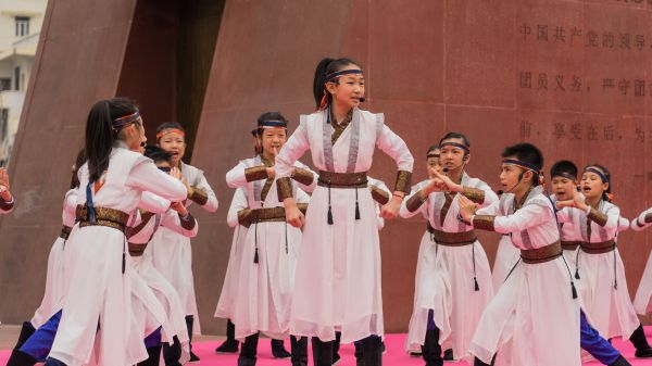 越秀区朝天小学的少先队员们表演了情景剧《长征精神薪火传》和《青春中国》《飞天·逐梦》《新时代的雷锋在哪里?》等精彩红色诵读和情景表演,向观众们展现了新时代青少年追逐梦想、朝气蓬勃的青春形象。