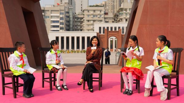 《团一大青年说》编委余倩雯与朝天小学广青融媒小记者们就《团一大青年说》书中内容做了生动有趣的阅读分享,小记者们提出了不少问题,余老师一一作答。
