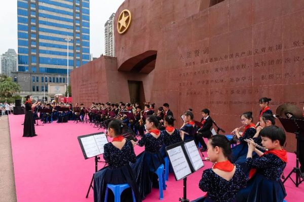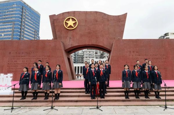 3月11日下午,由团市委、市少工委主办,越秀区少工委承办的“英雄花开英雄城·2023广州传承弘扬红色文化系列活动”——首场广州市红领巾红棉微剧场活动在团一大广场举行。伴随着嘹亮的鼓号声,展演在庄严的少先队仪式中拉开帷幕。来自周边6所中小学队员组成的东园文化广场大队为现场市民群众献上了管乐表演、舞蹈、红色微舞台剧、演说、互动朗诵等10个亮点纷呈的节目,以生动的宣讲形式展现了少先队员们用心学党史,讲好红色故事,传承红色基因,赞颂英雄城市的昂扬风貌,吸引了广大市民群众的驻足观赏。据团一大纪念馆方反馈,本次广州市红领巾红棉微剧场活动,是自“英雄花开英雄城”——团一大纪念馆系列活动开展以来,参与数规模最多、节目内容最为丰富的一场活动。