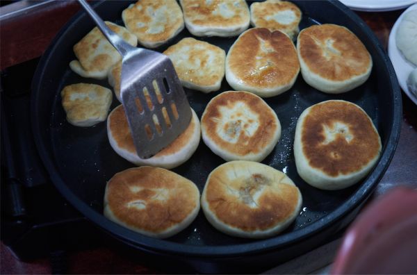 4 、煎饼:平底锅或电饼铛加热后放少量油,烧热后中火煎饼至两面金黄即可。