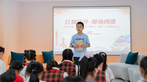分享会上,资深媒体人、青少年阅读推 广人金光风老师为小作者们上了一堂读后 感写作培训课,以《都市人 · 成长》刊登 的文章案例为大家讲述如何写出一篇能 够打动读者的读后感。