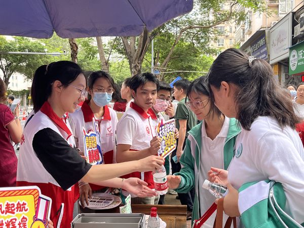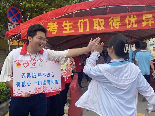 “我的身份从当年的考生转变为今年的志愿者,之前享受到了志愿者们贴心地照料,如今也希望回到母校,通过自己的力量去带动更多人加入。”来自执信校友会的同学说道,而同一组的志愿者、来自广州市第一中学的陈卓溢也有类似的感受。“志愿服务就是传递温暖,用自己的积极向上去感染他人。”活跃在越秀区各考点、协助开展志愿服务宣传工作的邓建斌是来自广州市第十七中学的高二学生,他平时主动参与志愿服务,为助力高考学生金榜题名,提前感受高考氛围,第一时间向广州青年志愿者协会报名参加高考志愿服务,希望广大考生能感受到来自学弟学妹们的关爱。