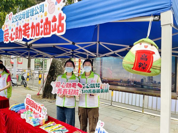 公交站场管理公司团总支在大坦沙、地铁西村站等6个公交站场设置“爱心助考点”,为有需要的考生免费提供文具包、爱心药品、矿泉水、纸巾和祝福语书签等。郭诗欣是一名“00后”共青团员,也是巴士驿站志愿服务队的志愿者。作为高考“过来人”,她对考生考前紧张忐忑的心情感同身受,特意提出在公交站场“爱心助考点”增加“好意头”物料氛围布置,营造浓厚祝福氛围,缓解考生紧张心情。“当我得知我们要开展助考活动,不禁回忆起自己高考的时候也有志愿者为我助考,如今我作为志愿者为考生们尽绵薄之力,他们能够带着我们的祝福自信满满地上考场,我觉得很开心。”