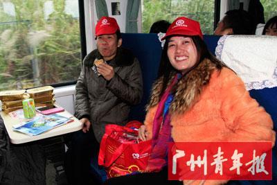 今年首次开设广州—湖北武昌的“共青团号”爱心铁路专列,免费送1472名在粤大学生和务工的优秀青年回家。活动反响热烈,前期报名人数超过一万人。1月24日上午九时零二分,爱心专列搭乘着1472名来穗就读、务工人员返回家乡。在搭乘列车的同时,1472名乘客均获赠一个主办方赠送的爱心“福袋”。此外,广铁集团团委安排了铁路安全知识有奖问答、热身破冰游戏、“广铁佳音”慰问演出等活动在列车上进行,让乘客们提前感受到团圆过年的气氛。