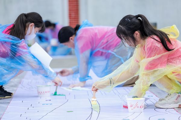 据悉,团南沙区委、南沙青联还将《南沙方案》未来发展方向的重点项目,绘制成约14米*10米的巨幅画作“湾区新蓝图”,而巨画绘制填色,则由参与南沙品牌项目“百企千人”实习计划的80名香港青年共同完成。参加巨画绘制填色的学生吴婧嫣目前正在广州南沙资产经营集团有限公司实习,在完成绘制后热情地表达了自己的兴奋,“我从来没有画过这么巨型的画,这是第一次!当这幅巨制画作合并成一块呈现在我面前时,我非常震撼,这就是我们粤港澳大湾区的未来蓝图,是我们粤港澳青年共融共创的盛景。”巨幅画作勾画着大家对大湾区的缤纷畅想,也点亮了粤港澳青年对大湾区美好蓝图的憧憬和笃定。