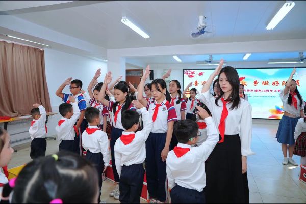 在入队之前,很多学校都会对孩子们进行队前教育,其中也包括心理方面的教育。越秀区雅荷塘小学的心理老师孙老师表示,在学校准备分批入队的时候,她都会让孩子们主动去了解爸爸妈妈当年入队的一些小故事,去听听爸爸妈妈与“分批入队”相关的一些美好的记忆。在孙老师看来,孩子对待入队的态度,源于对“分批入队”这件事情的认知。而孩子的认知,很大程度上源于外界对这个事件的描述、形容和评价。而在“分批入队”的整个过程中,家长与中队辅导员是距离孩子最近的两个角色,如果能引导孩子认识到“入队是一种美好的向往”,那么孩子就会对这个事件抱有积极正向的态度,如果大人通过“是否第一批入队”去渲染对比与区分的话,那么对没有成为第一批队员的孩子将是一种打击,同时也会在已经入队的孩子心里埋下“如果我不能争取第一的话,我就会像他们一样不能获得肯定”的心理种子。