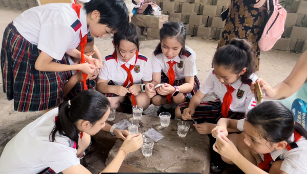通过来到东濠涌研学,我们飞扬小队的队员们深入学习和了解东濠涌这条广州千年河涌的文化历史和近年来的整治成果。河涌清水潺潺,小鱼儿在水里嬉戏,队员们在东濠涌亲水平台通过快速检测包、烧杯等化学实验器材,测试了涌水的pH值、水体COD(有机污染物)等水质指标,用比色法确定采样的水质情况。通过观察实验结果得出水质不含有机杂质、pH值为6.75-7.25。