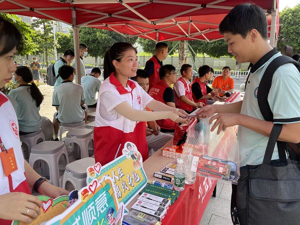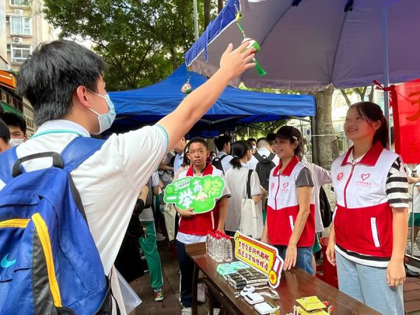 6月22日是2023年广州市中考落下帷幕的日子,也是中华民族传统佳节——端午节。当中考遇上端午节,青年志愿者们结合传统文化开展特色助考,鼓励考生放平心态,考出好成绩。同时在“龙舟水”活跃期间,青年志愿者们准备充分,提前到考点附近铺排,携带文具、饮用水、雨具等物资,全力帮助每一名考生顺利应考。