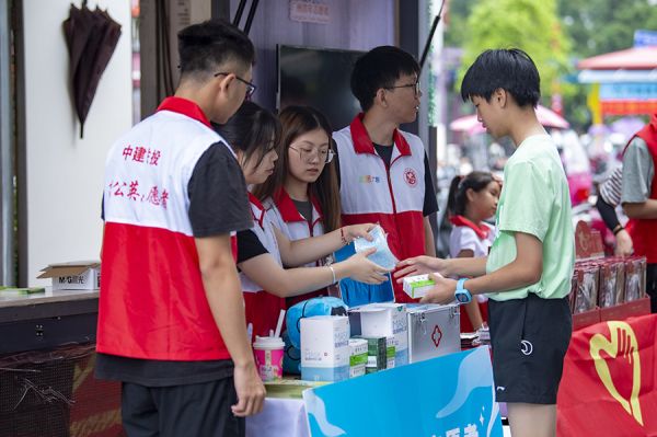 烈日下,青年志愿者坚守岗位