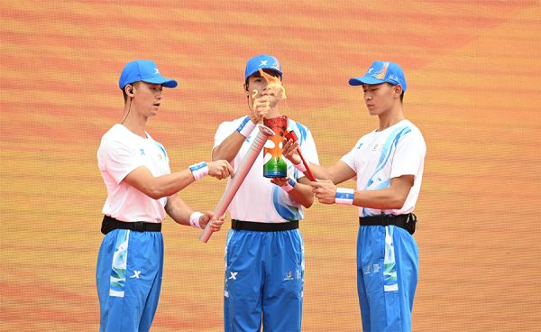 青年志愿者正在为大运会火炬传递做准备 张赞锋/摄