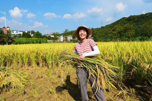 华南理工大学“樟往考来”实践团在英德市连樟村田间采体验稻谷收割的艰辛与喜悦