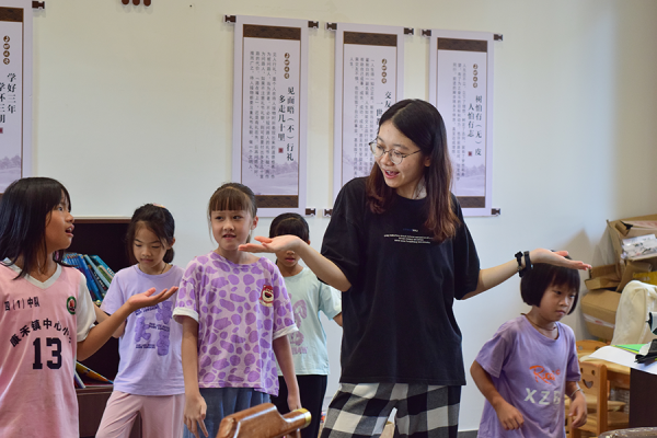 华南师范大学“绿漾康禾队”在河源市东源县康禾镇仙坑开展第二课程,教同学们跳舞,丰富乡村孩子们课余生活,编织七彩假期梦 何焱/摄