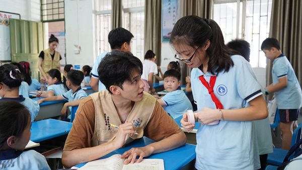 “小朋友们要记住,在网络上不要点击陌生人发来的网址,也不要轻信对方的转账要求。”实践期间,潮海品茶下乡队前往云澳镇中心小学,结合自身专业知识开设艺术、自然、书法等专业课程,并就红色历史、安全反诈、普法宣传等内容进行宣讲。