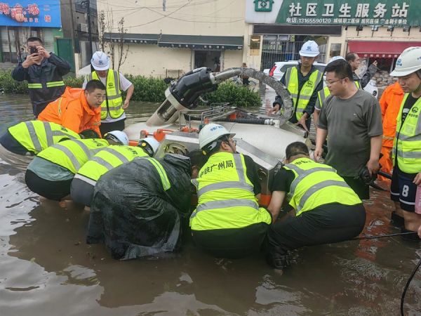 连续的强降雨导致莲池区部分市政道路雨污管道雨水倒灌,井内雨水无法及时排出造成内涝,其中最为严重的军校广场街及东苑街等道路因地势低洼造成周边雨水汇聚,最深处已没过膝盖。项目部紧急部署、靠前指挥,协助保定市城市综合行政执法局抽排市政道路及污水井、雨水井内积水,清除阻水障碍。抢险人员冒雨连续奋战20个小时,顺利完成抢险任务,恢复交通通行,彰显央企青年在紧急时刻的责任与担当。
