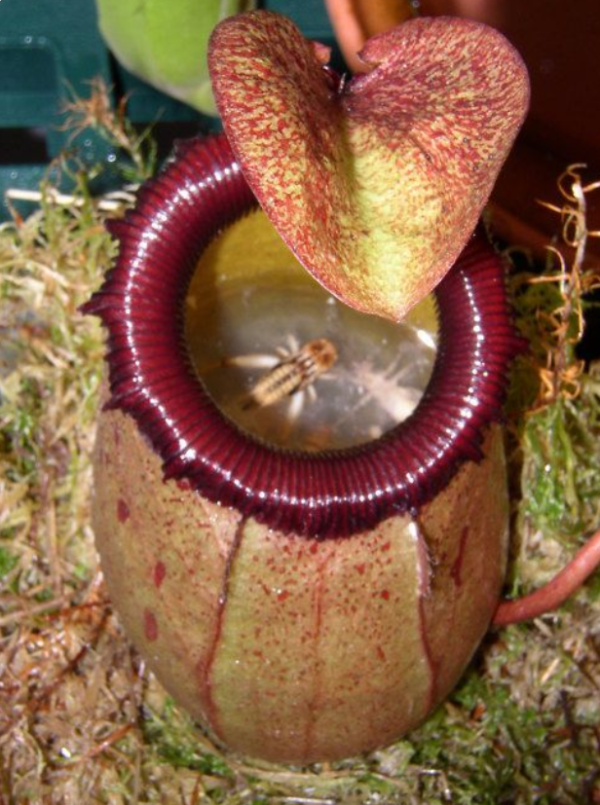 那为什么猪笼草会吃肉呢?因为猪笼草的老家在热带雨林的下层,阴暗湖湿,土壤贫瘠,植物见不到什么阳光,生长也受到限制,所以需要捕捉昆虫等小动物来补充营养