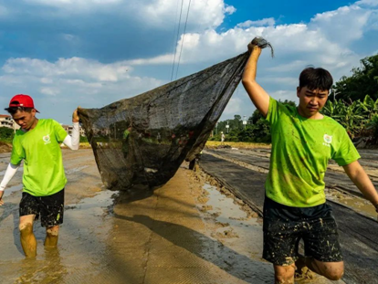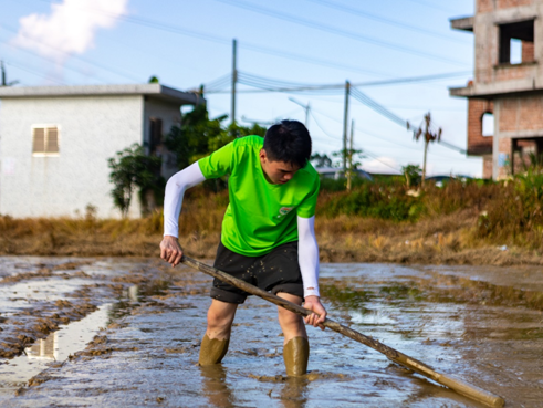 搬运8000个育秧盘、稻田干耙及平整稻田近4亩地、收割近1亩稻谷近13110斤、人工晾晒稻谷共600斤……上午6时,队员们穿着统一队服,走进田间地头,手持农业用具,一收一放,在泥泞土地中专注田间水稻耕作。据了解,实践队师生团队户外服务时长超过1000小时,有效助力水稻茁壮生长,为农田增添勃勃生机。