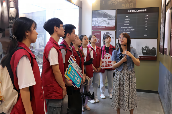 “文旅兴业”实践团参观东江纵队粤北革命活动史实展,认真聆听讲解