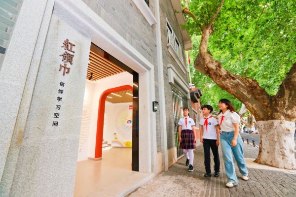 日期:[2023-09-04] 版次:[62] 版名:[少先队瞭望]7月24日,位于南京市梅园新村41号楼的“小小红梅·红领巾信仰学习空间”正式开放,空间外立面上巨大红领巾熠熠生辉。南京青少年党团队一体化学习线路——“小小红梅”红领巾信仰学习之旅同步启用。今后,“小小红梅”将被打造成一个融合教育空间,在工作日作为逸仙小学少先队活动阵地,在周末及节假日,作为少先队实践教育阵地有序对外开放。