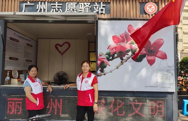 国庆到,志愿驿站飘起红红的国旗,一起做志愿服务喜迎佳节(李琳供图)