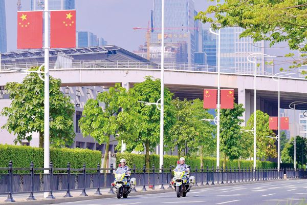 金秋迎国庆,欢腾庆佳节。国庆节来临之际,广州大街小巷国旗飘扬、花团锦簇,满城洋溢红色。一抹抹“中国红”将街头扮靓,浓浓的喜庆气氛扑面而来。