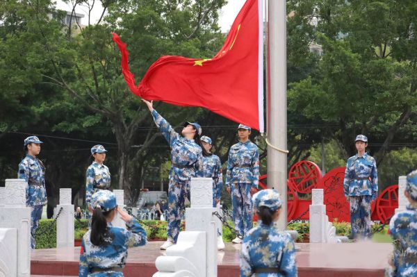 在正式进行第一次升旗礼时,军乐奏起,她心里不断重复着教官的话:“旗帜,就是方向。旗稳,人心才稳,方队才稳!”她带领着国旗方队整齐地正步经过主席台,来到升旗台上,扣旗、理旗,一气呵成。国歌奏响,她用尽全力抛出国旗,立正敬礼。鲜红的五星红旗随着响亮激奋的国歌缓缓升起,这时候的她,不但升起了手中鲜红的国旗,更是升起了心中的五星红旗。