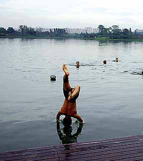 泳池”,老师建议抽干水》,配图是几人畅游于清澈的湖水中。如今的中心湖已不再清澈了,想恢复当年“盛况”,目前看来实属不易。(整理编辑廖国政)