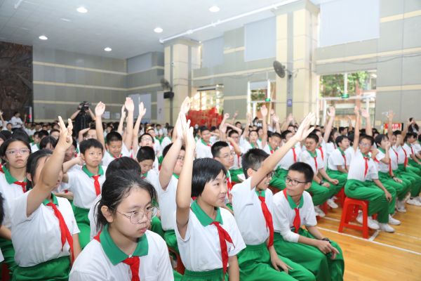 活动上,华南理工大学教授殷盼超为同学们带来了一场科学味十足的“游戏式”科普,国家二级心理咨询师廖凤贤则带领同学们学习了青春期心理知识。当天还举行了越秀区育才实验学校2023级少先队建队仪式,“广青融媒学生通讯社”、广青融媒“新绿书屋”共建仪式。