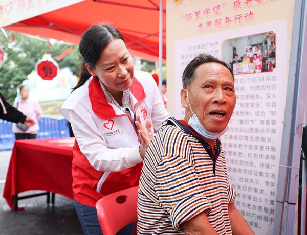 重阳期间,广州市志愿者行动指导中心联合广州手拉手志愿服务促进会、广东食品药品学院健康管理与生物技术学院、广州涉外经济职业技术学院康复医学院、广州城市职业学院学生志愿者在白云山开展“重阳登高,敬老助老”广州青年志愿服务行动,共240人次上岗服务。志愿者在鸣春谷山顶广场、南门出入口、索道站口及登高路线沿途为市民开展登高指引、秩序维护等服务,组织爱绿护绿宣传、垃圾分类游戏互动、应急救援知识科普等活动。活动现场为长者拍摄纪念照片近500张,送书法祝福纪念品800余份,受到市民广泛欢迎。